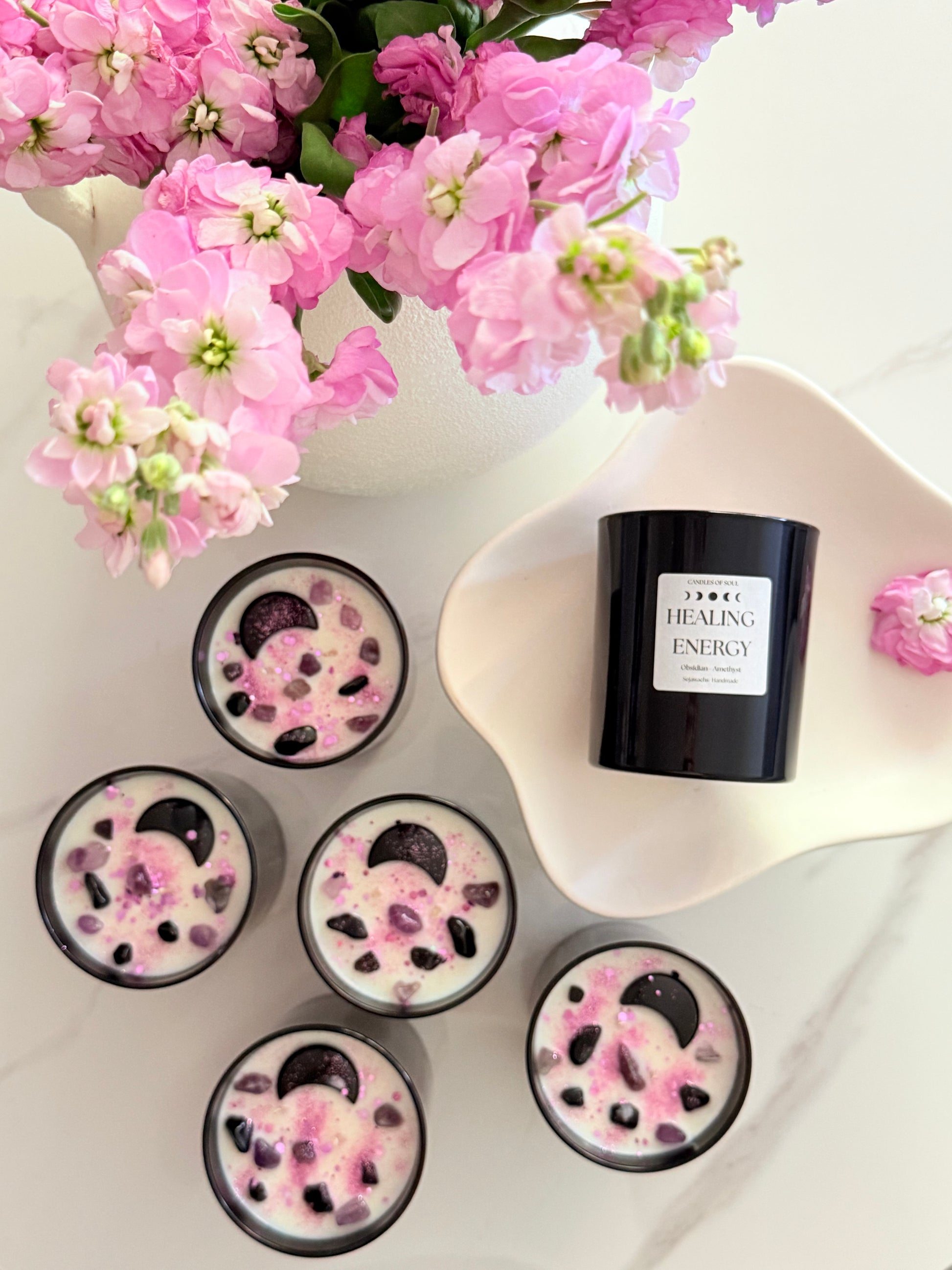 Die handgegossene Kristallkerze HEALING ENERGY vereint 100 % natürliches Sojawachs mit kraftvollen Heilsteinen und einem warmen, würzigen Duft. Sie wurde mit Sorgfalt gestaltet, um Ruhe, Klarheit und emotionale Heilung zu fördern.